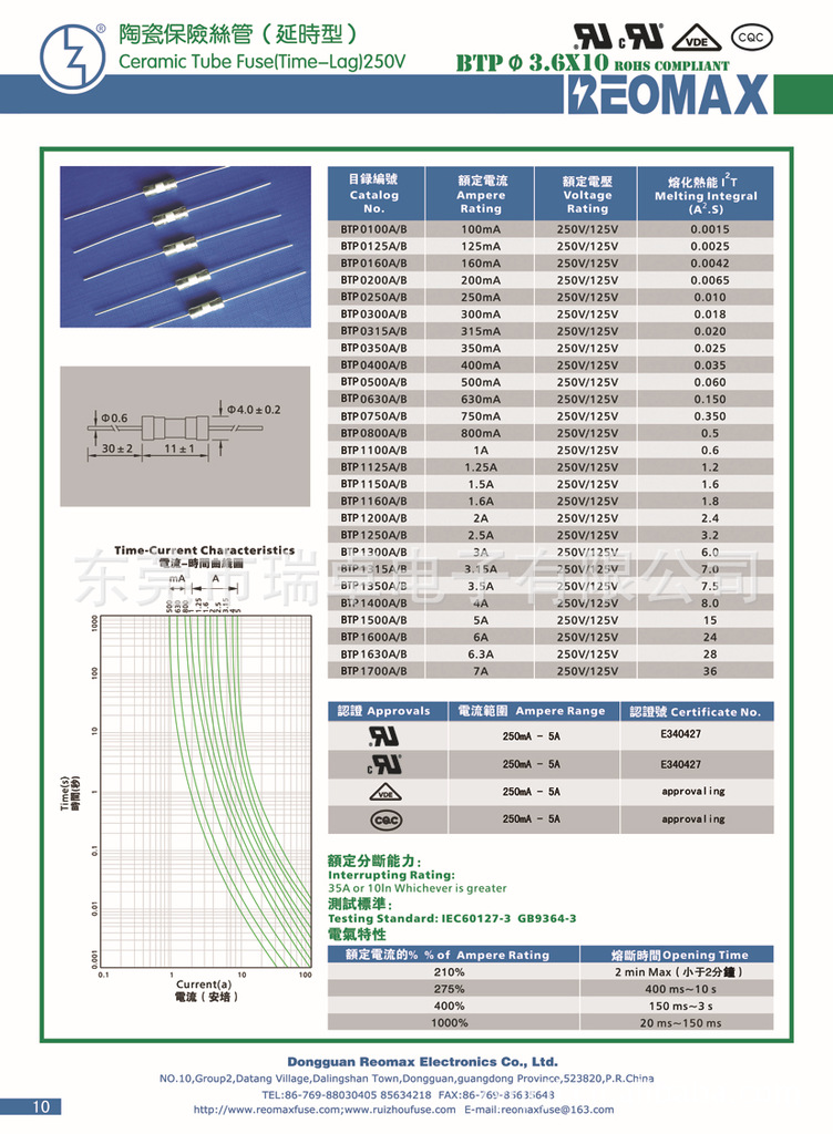 外壳:陶瓷管 每15分钟24个周期(EN 60068-6)