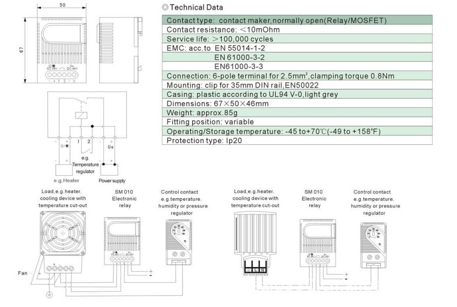 9、固定方式:卡口为35mm DIN路轨, EN50022
