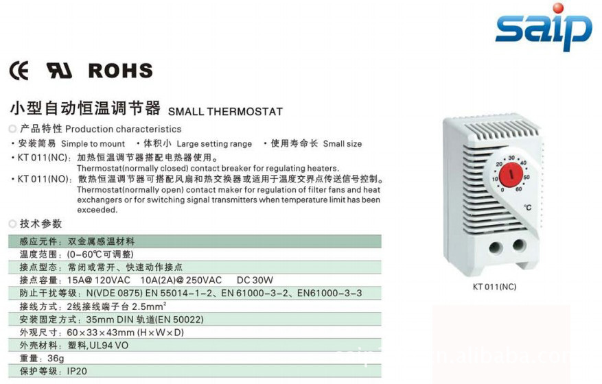 温箱NC(常闭);自动调温器在温度上升打开安装有一个红色的温度拨号盘.