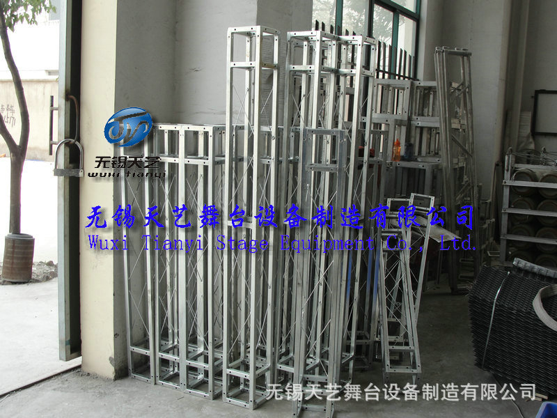 铝桁架,钢/铝快装活动舞台,折叠舞台,玻璃舞,展篷房,铝合金灯光音响架,雷亚架,T台等广电传媒器材为台一体的综合性的大型企业。公司位于国家级经济开发区 ,芙蓉工业园区A区蓉兴三路 32-1号,无锡东出口处8公里即可到公司,公司凭借着高质量的产品,良好的信誉,优质的服务,产品畅销全国近三十多个省、市、自治区以及远销南美、东南亚、欧美等国家。竭诚与国内外商家双赢合作,共同发展,共创辉煌。无锡天艺一直秉承“质量为首,服务为先,诚信为本”的经营理念,欢迎来公司参观洽谈。我们竭诚为您提供最优良的品质和最好的服务本公司始终坚持“以质量求生存为本”,本着“质量第一、信誉第一、竭诚服务、精益求精、不断创新”为宗旨,在国内市场奠定了良好的基础。为了更好的推行ISO质量管理体系,规范生产流程,严控把关产品质量,公司配备目前最先进的组装焊接与机械加工设备,流水线式的生产,不断提高生产技术和质量,确保以最优质的产品来满足客户的需求。