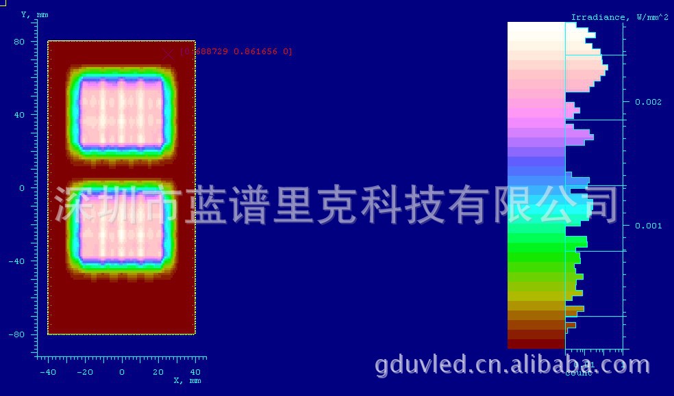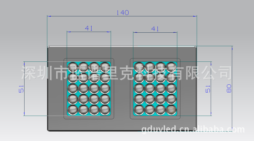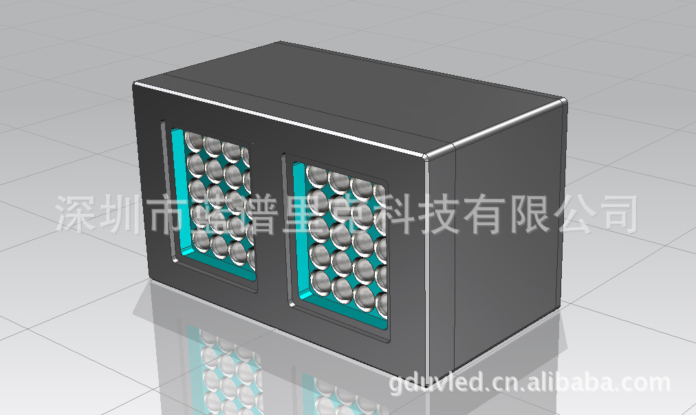1.该照射头采用40颗033B-3W-UV365nmLED。