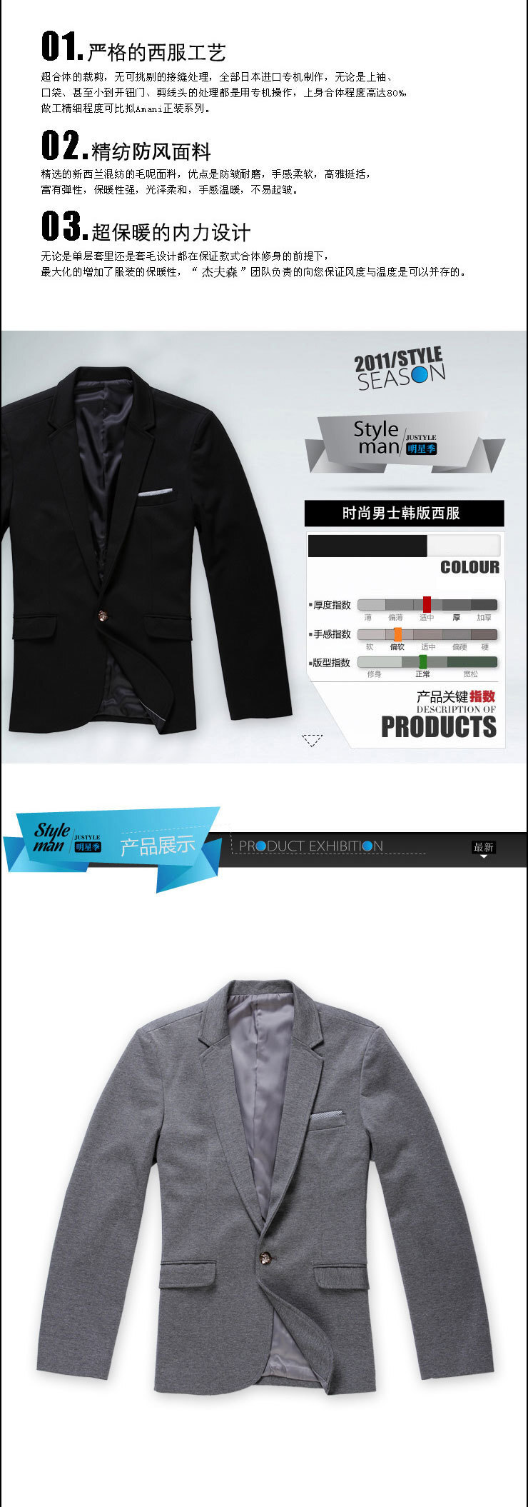 2011新款秋冬西服修身韩版休闲西服男士外套西装9925