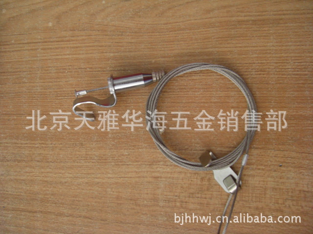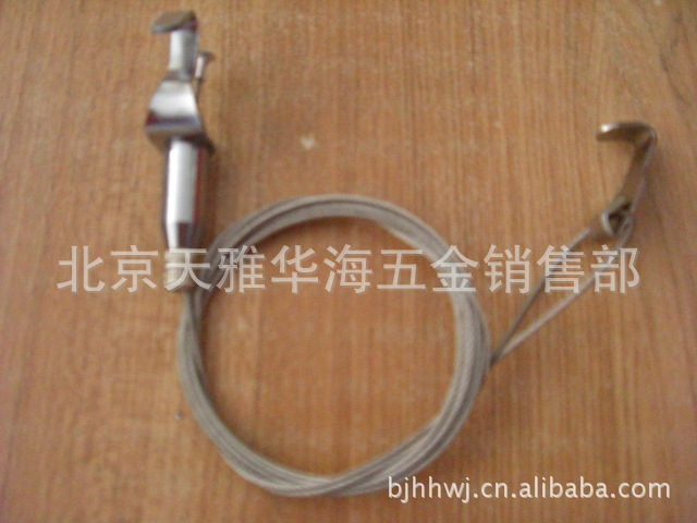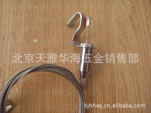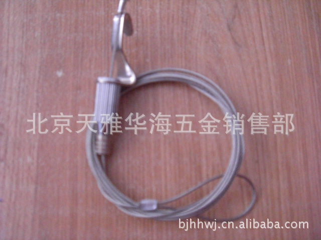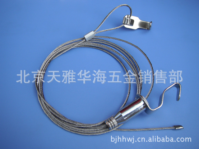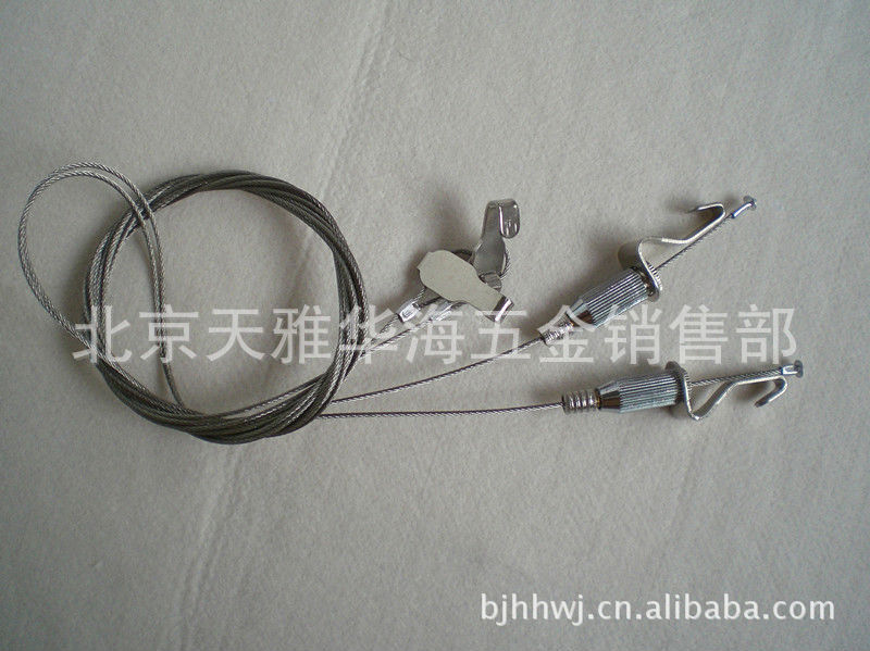 尺寸;2米长,不锈钢钢丝。两头有挂钩,钩有特制螺丝管制,长度随意伸缩调节。钢丝规格有Φ1.5毫米,Φ2毫米。亦可选购表面包塑钢丝(不扎手)。