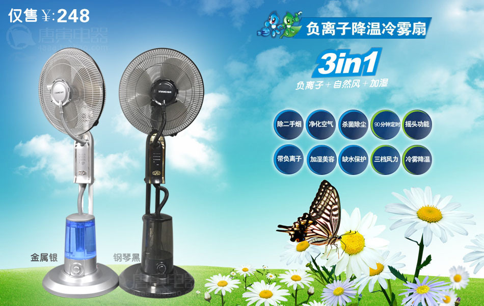 2、冷雾能使人清爽舒适,使风扇效果更明显,轻松渡过炎炎夏日。