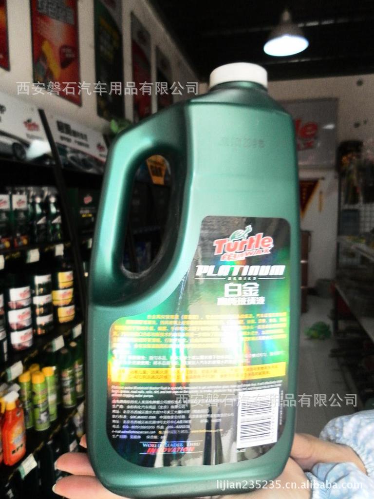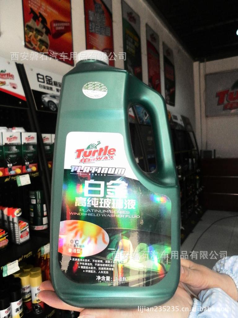 龟牌髙纯玻璃液,专业清洗玻璃无条纹痕迹。 汽车玻璃往往比普通玻璃更难清洗,挡风玻璃上经常覆盖着各种污杂物,例如虫胶、油脂、沥青、焦油、污垢和树粘覆于玻璃外层,烟雾、手印和灰尘覆于玻璃内层。这些污染物混杂在一起造成玻璃很难清洗,汽车的窗口色彩和新技术的玻璃涂层进一步增加了清洗的难度。绿宝石髙纯玻璃液可使玻璃达到最佳光泽效果和清洁效果,含有油脂速溶剂和表面活性剂,可快速去除玻璃表面污垢等。【使用方法】: 用于直接清洗:摇匀本品,将本品涂于或以雾状喷于物体表面,用干毛巾擦拭均匀,稍微抛光即可。作为补充液使用:将本品摇匀后,直接加入汽车的玻璃水药液盒内即可。注意: