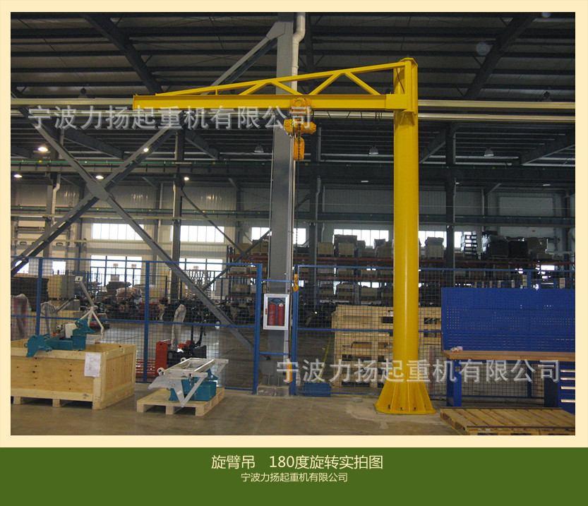 我公司生产的悬臂吊、旋臂吊规格多、品种全,无论您对起升重量、旋转角度,臂长和功能有什么样的要求,我们都能为您提供最佳的解决方案,甚至我们有带双旋臂、伸缩臂等旋臂吊。 所有的规格都具有一个共同的优点:自重轻,旋臂长,起重量大,安装、操作、维修简单。它们完全独立,是一种理想的工作岗位起重机,并适用于室外的货场和装卸 平台。定柱占地面积小。对于起升净空非常小的情况下也能获得最大的起升高度。