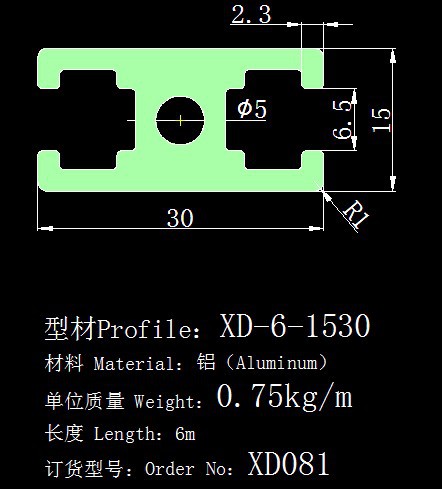 型材:15*30门框型材,6mm槽宽工业铝型材系列