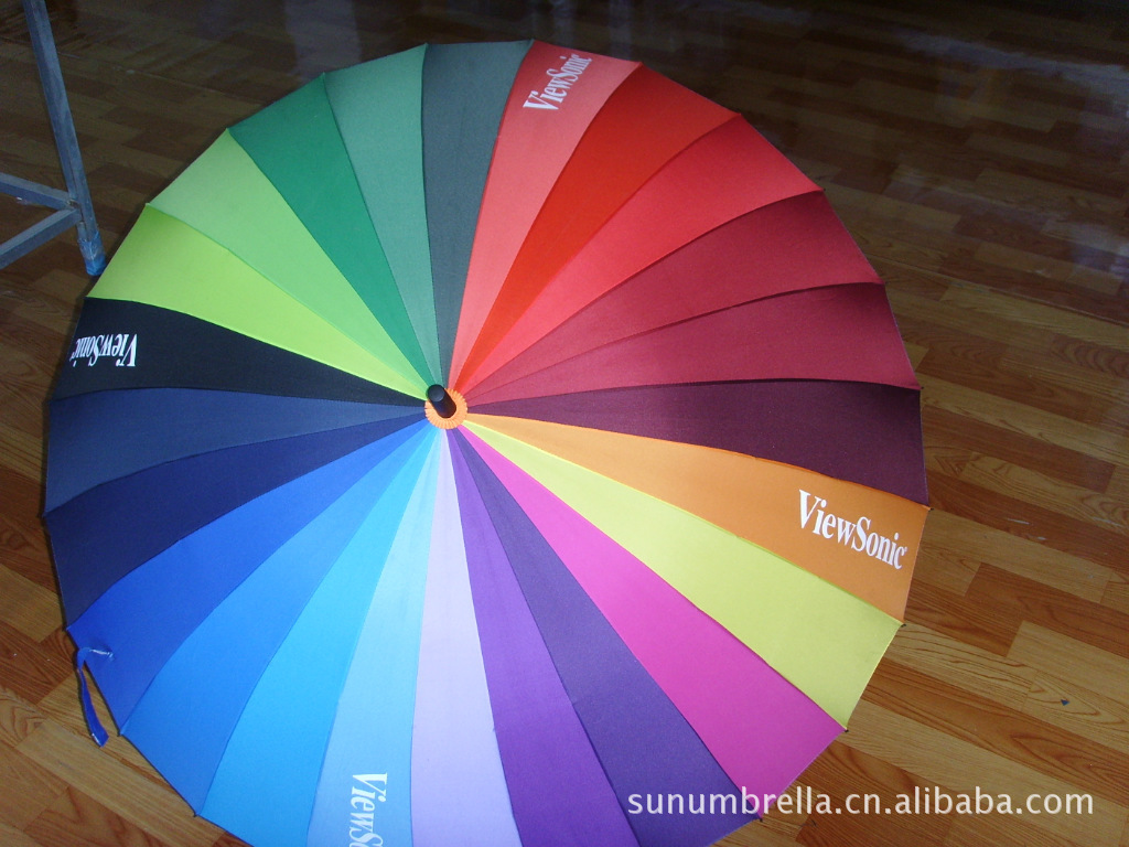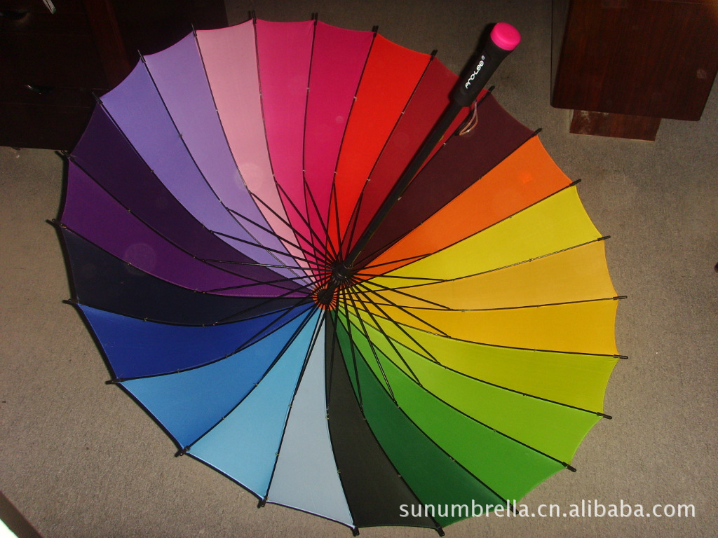 这款雨伞,叫做彩虹伞。 因为有6-8种颜色,可以根据客户喜爱,做成12K- 14K-16K-24K如此不同的规格。