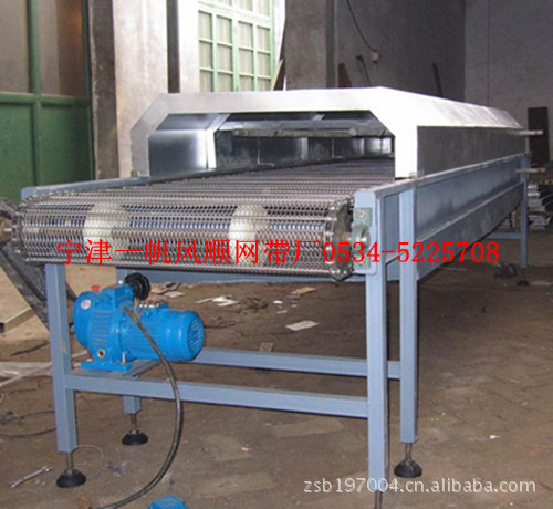 宁津一帆风顺网带厂制造的烘干机有两种,电热管烘干和热风炉烘干。以上图片是网带烘干机,可根据烘干物品的脱水情况和生产线的长短来确定单层烘干机或多层烘干。干燥的湿物料由皮带输送机或斗式提升机送到料斗,然后经料斗的加料机通过加料管道进入加料端。加料管道的斜度要大于物料的自然倾角,以便物料顺利流入干燥器内。干燥器圆筒是一个与水平线略成倾斜的旋转圆筒。物料从较高一端加入,载热体由低端进入,与物料成逆流接触,也有载热体和物料一起并流进入筒体的。随着圆筒的转动物料受重力作用运行到较底的一端。湿物料在筒体内向前移动过程中,直接或间接得到了载热体的给热,使湿物料得以干燥,然后在出料端经皮带机或螺旋输送机送出。在筒体内壁上装有抄板,它的作用是把物料抄起来又撒下,使物料与气流的接触表面增大,以提高干燥速率并促进物料前进。载热体一般分为热空气、烟道气等。载热体经干燥器以后,一般需要旋风除尘器将气体内所带物料捕集下来。如需进一步减少尾气含尘量,还应经过袋式除尘器或湿法除尘器后再放排放。根据您的要求设计单层和多层。来电联系我们的最新产品价格0534-5225708