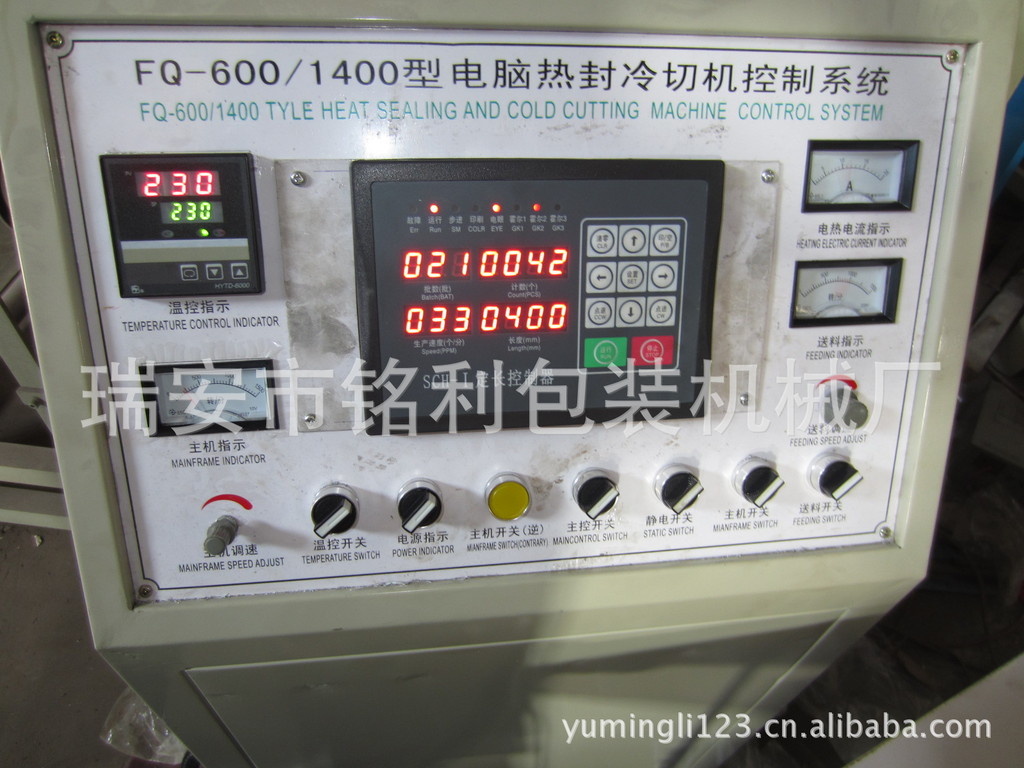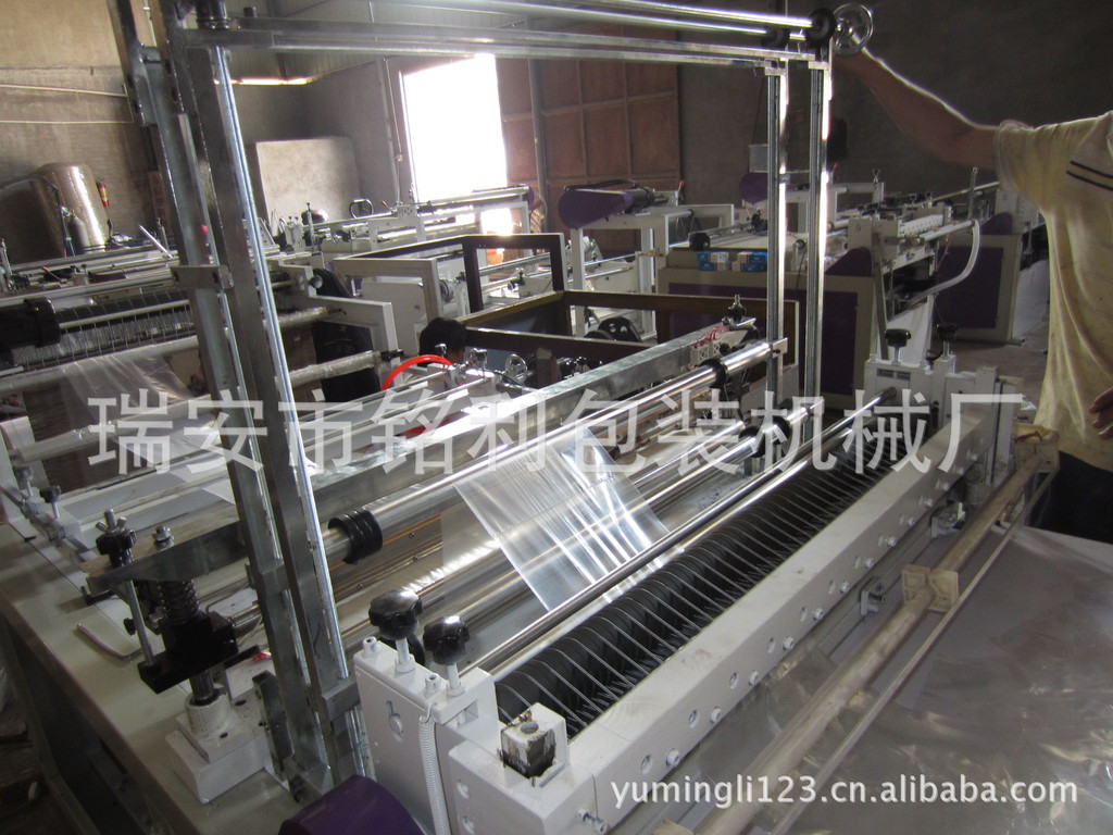 该机适合制作高低压背心袋(超市手提袋)、平口袋(服装袋、鞋袋)、医用一次性包装袋、卫生巾袋等( ● 性能及特点 1、整机采用微机电脑控制,步进电机拖料(可选配伺服电机控制系统)。 2、任意定长,步长光电跟踪,准确、平稳,丢标自动停机,送料采用光电控制。 3、自动计数及可设定计数报警。 4、自动恒温使袋口封合牢固、平整。
