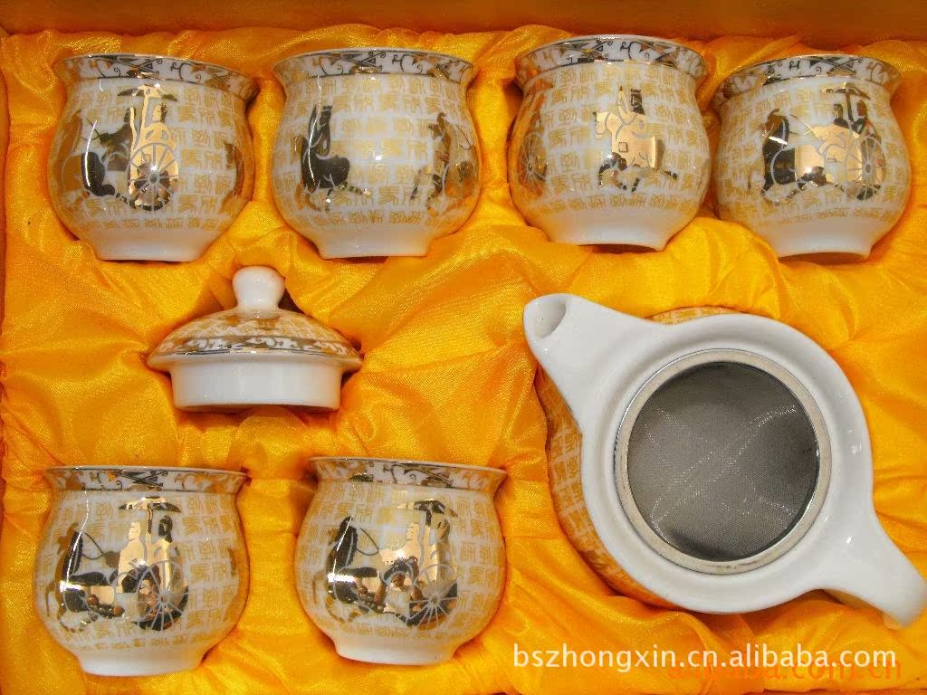 本店宗旨:诚信经营,实事求是 唯有质量的才能走的更远。 古人云:“一分钱、一分货 ”请放心选购 【一些个介绍】 9头骨瓷茶具 咖啡具 非常实用漂亮 包装:普通礼盒 茶杯8个壶1把 壶高14cm口径7.5cm 杯高5cm口径7.3cm 净重1.8kg包装后2.6kg左右 青花画面和贵妃画面 精美骨瓷实用大方