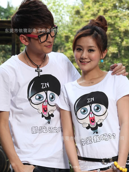 男女装厂家直销便宜服装批发情侣装批发 幸福又轮情侣T