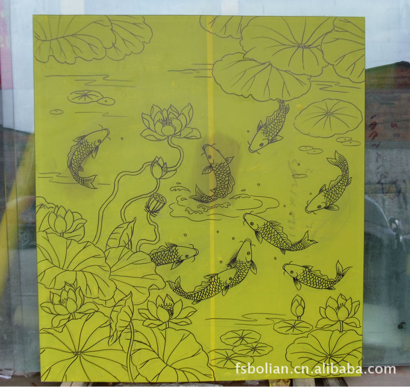 彩绘玻璃是目前家居装修中较多运用的一种装饰玻璃,制作中,先用一种特制的胶绘制出各种图案,然后再用铅油描摹出分隔线,最后再用特制的胶奖颜料在图案上着色,