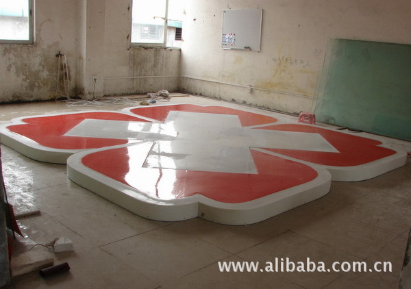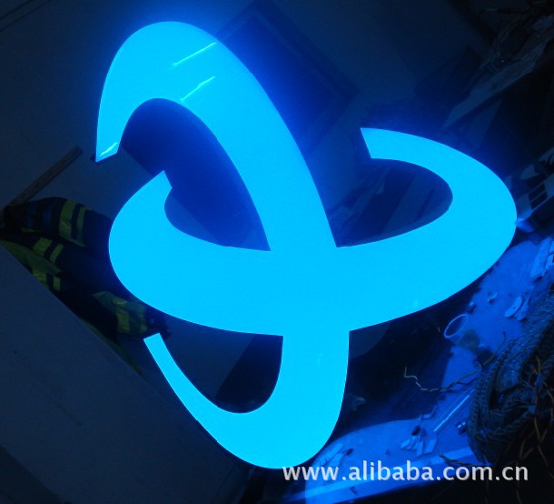 本公司推出的新型玻璃钢通体发光字:是现代电子技术与高分子技术完美结合的产物。它是在一个预先安装好LED光源的模具内,利用液态亚克力材料一次性灌封成型文字的先进加工工艺。做出的字具有表面光滑入镜、密封性好、强度高、抗冲击、防水、防酸、防碱、防爆、不怕狂风暴雨乃至冰雹袭击的特点,而且因为使用了高亮度LED光源,所以产品非常节能,寿命超长(一般LED使用寿命为5-10年)。它既有吸塑字深厚亮丽的外表,更兼备了霓虹灯七彩发光的特性,在同一个字体里可以利用控制器变换出不同的色彩(可实现七彩跳变、渐变、追逐、流水、扩张、压缩等多种动态效果);因此具有吸塑字、霓红灯字无法达到的效果。而且字体大小不受原材料的限制,小到几公分、大到十几米均可制作。具体来说,新型发光字克服了传统发光广告招牌的几点不足:
