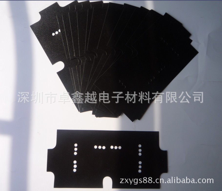 2、绝缘材料垫片产品特性:该薄膜具有成形性好、机械性能优异、在高温下有较好的尺寸稳定性及高阻燃等级,较适于供电器、磁盘驱动、母线、电视/显示器、PC板和营业设备的绝缘运用,当与金属箔片贴合时可用于绝缘和EMI/FRI遮蔽。
