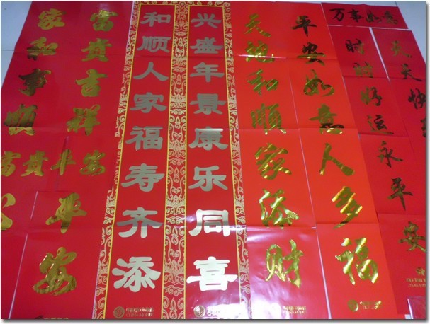 春联生产设备:日本三菱全开四色机一台、德国进口海德堡对开四色、五色胶印机7台、大型六色轮转印刷机1台、超全张印刷机3台、四开印刷机4台、大型液压烫金机10台、小型烫金机5台、模切机、丝网印刷机等机器30余台,全部是同行业最先进的设备。公司具有日产对联40万副的能力,为各类客户的订单提供了可靠的质量与周期保障。