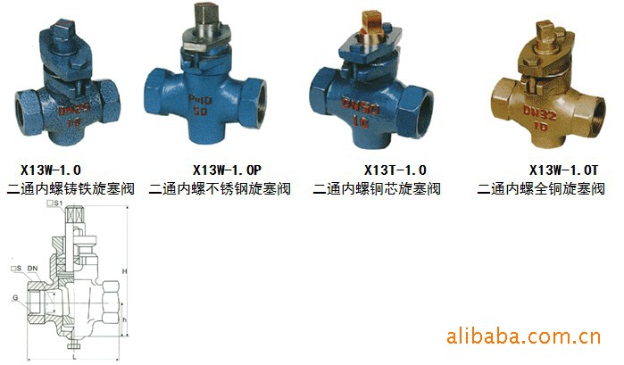 二通内螺铸铁旋塞阀,二通内螺不锈钢旋塞阀,二通内螺铜芯旋塞阀,