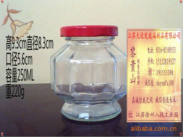 产品有蜂蜜瓶、果酱瓶、酱菜瓶、泥螺瓶、酱油瓶、醋瓶、麻油瓶、腐乳瓶、胡椒粉瓶、橄榄油瓶、调味瓶、酒瓶、果酒瓶、保健酒瓶、药酒瓶、饮料瓶、果汁瓶、汽水瓶、可口可乐瓶.苹果醋瓶、罐头瓶、医药瓶、枇杷膏瓶、燕窝瓶、金银花露瓶、生物瓶、保健瓶、香水瓶、墨水瓶、农药瓶、化妆品瓶、咖啡瓶、麦片瓶、口杯、奶瓶、口服液瓶、玻璃烛台、把子杯、水杯、玻璃杯、玻璃制品、玻璃器皿、菌苗组陪瓶等10000多个玻璃瓶品种。新产品开发7-15天出产品,还可按客户要求生产专用瓶,在最短时间内设计出新瓶型及制成新模具,并能为客户来样烤花、刻字、蒙砂等深加工。公司代办拖运(汽车,零担,集装箱车皮 )。公司下属瓶盖厂及模具厂,生产各种规格型号的马口铁瓶盖/塑料瓶、电化铝盖.....并可根据用户需求做专用盖