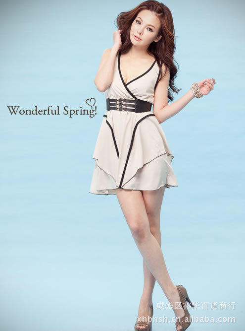 C8-81001新品2012春夏新款百搭腰绑带点点性感背心裙
