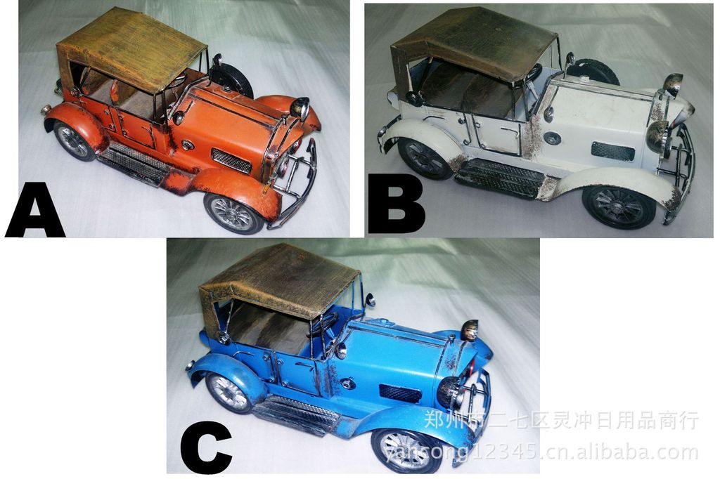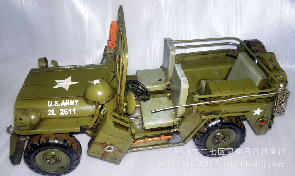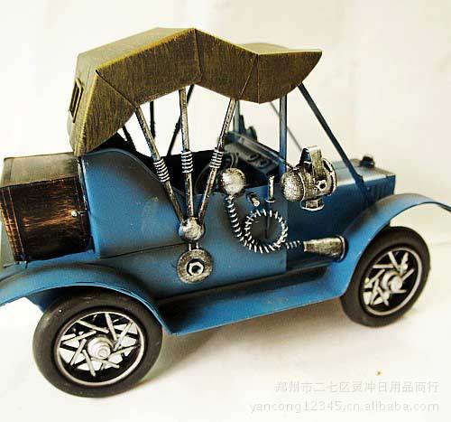 郑州市二七区灵冲日用商行前身是郑州市金鑫铁艺厂成立于九八年九月,是一家专业从事铁艺礼品设计、生产及销售的综合性私营独资企业。公司从创立到现在因其厂家直销价格低的优势、贴心的服务以及过硬的质量一直受到广大批发商、零售商、淘宝网、拍拍网代理商等的大力支持与信赖。公司拥有完整、科学的质量管理体系.凭诚信、实力和产品质量获得业界的认可。 我们公司生产的老爷车系列产品(包括汽车,火车,消防车、吉普车、铁艺摩托车、铁艺烟灰缸,铁艺人,铁艺铠甲武士。铁艺表,铁艺笔筒等),全部工艺均用金属为材料仿真制作,从零件加工到组装、上色,全部由手工完成,细节丰富,配合仿古的喷绘效果,有很高的观赏和收藏价值,适合家居装饰、业余收藏和礼品赠送。目前已经推出的款式已经达到近千种,仍不断开发新的产品,也可根据用户的要求进行个性定制。 经过多年的发展,凭着良好的信用、优良的服务与众多厂家建立了长期的合作关系。热诚欢迎各界朋友前来参观、考察、洽谈业务。.双层烤漆。形象逼真。家居装饰之精品公司网址http//:yancong12345.cn.alibaba.com//