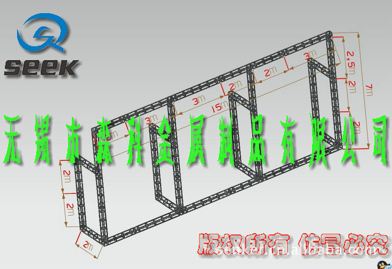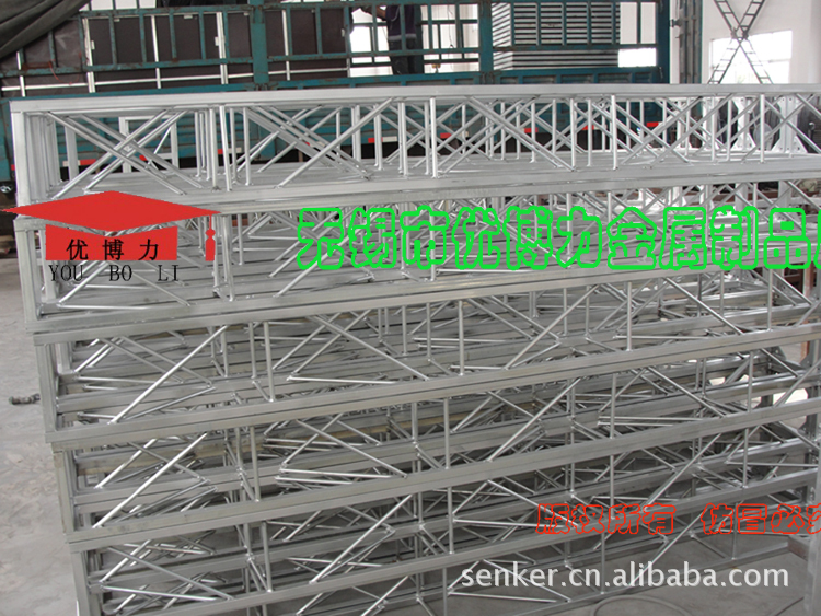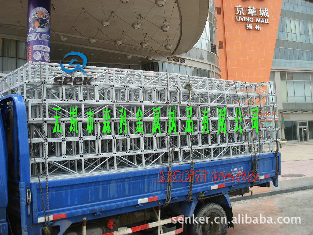 无锡市森科金属制品厂是一家以专业生产展览钢制桁架,快装活动舞台(专利),移动式脚手架,铝合金桁架,铝合金灯光架,雷亚架,A字架,铝合金舞台,玻璃舞台,折叠舞台,T台为一体的综合性的大型生产企业。公司拥有成熟的销售团队,竭诚为您提供最优质的服务,拥有最强大的技术和设备支持,全力为您打造质量最精的产品,公司秉承“质量为首,服务为先,诚信为本”的经营理念,立志在行业内创出辉煌!争创行业第一!欢迎来厂参观洽谈。咨询电话:0510-88361366;13961702586.QQ:898623099.我们竭诚为您提供最优良的品质和最好的服务。