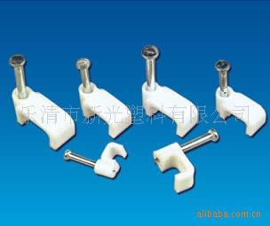 特点;注射成型,弹性大,耐冲击,绝不破裂,本系列线扣线卡均为插钉式、钢钉直接附在线卡,可大量节省工时,降低施工成本