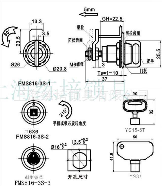 MS816-3S小的压缩收紧转舌锁,性能卓越,有5MM左右的压缩收紧量,可以有效紧闭箱柜门,且防震作用,锁芯样式有多种,-1为直接带柄式,开启和关闭较方便,-2为四方芯式,带工具四方钥匙,-3为棘形锁芯,锁芯样式特殊,防护性能更佳,-4为一字槽式,无需钥匙,也可开启,使用也方便,且一字槽式也有全不锈钢材质供应,防锈使用寿命更强!可用于特殊要求和机械箱门选用!更多信息请来电查询!021-58918041