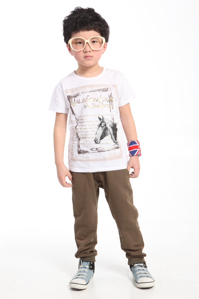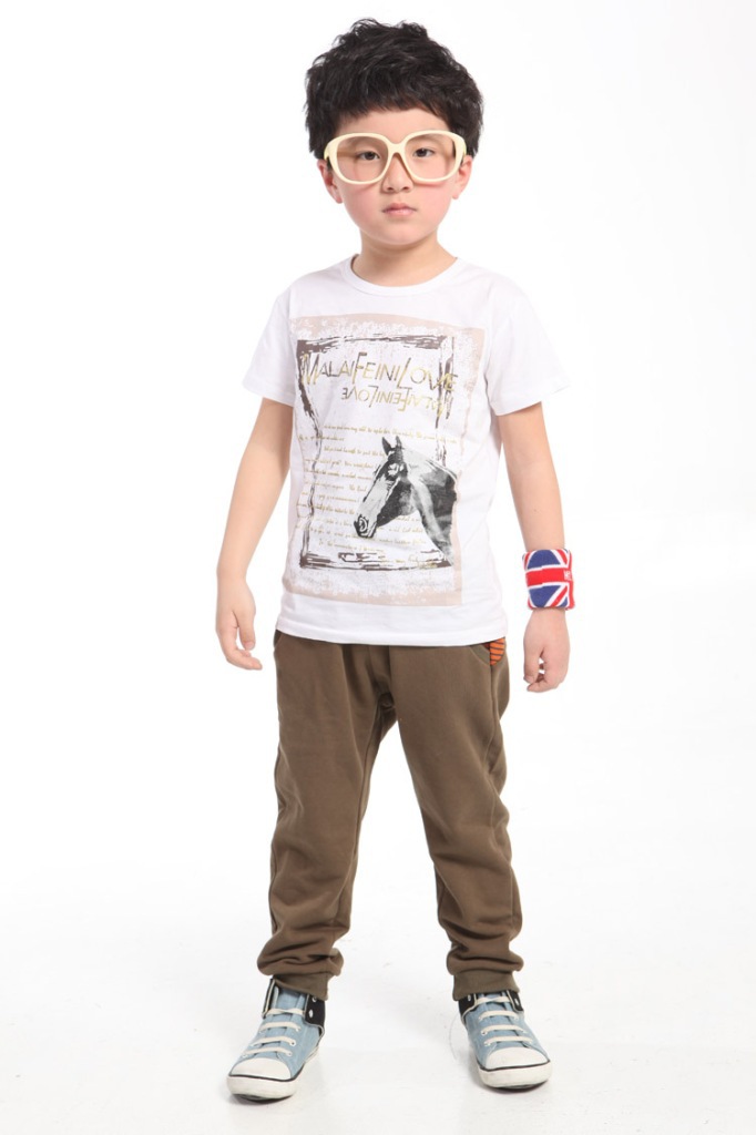 宾果潮童装 男童短袖T恤印花马图案透气休闲韩版2012夏装新款
