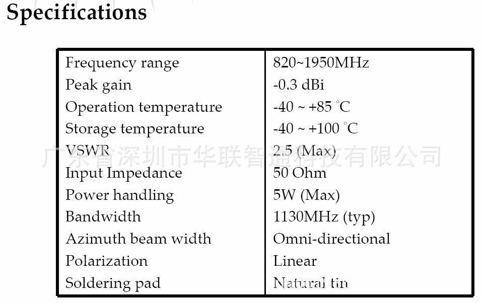 本产品是用LTCC制程所生产,全頻段天線(Wide Band:820MHz~1950MHz)