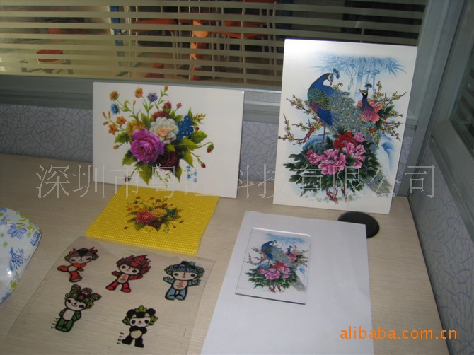 6.不受物体材质的影响: 可以用丰富的色彩在原材料 (金属、塑料、石材,皮革,木材,金属,玻璃、水晶、亚克力、,铜版纸) 和完成品 ( 小部件整理箱,钱包,皮包,商标,牌匾等 ) 等表面进行图像的彩色图文印刷服务,因为喷印时喷头与介质面是非接触性,不会因热量和压力发生变形等现象,因此可以在容易变形柔软的原材料(如皮革及纺织品)上印刷。