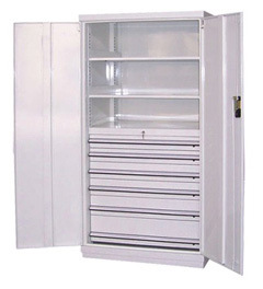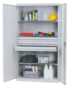 置物柜(也叫储物柜),置物柜是一种放置物品的全封闭式的金属储物器具,适用于库房、车间和生产办公场所,存放工(量)具、零配件,仪器仪表和图纸资料等相关物品物料。配合零件盒、挂板、抽屉等配件可进一步增加置物柜的储存功能,能够实现对工厂生产设备、工具、零备件等物品的统一管理。多台置物柜可以组成车间局部隔断,达到既能分隔空间又能存储物品的高效利用空间的目的。