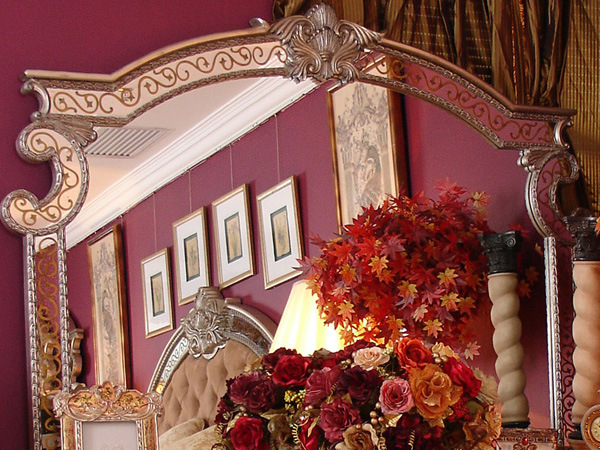产品说明:实木雕花、布艺、镜子