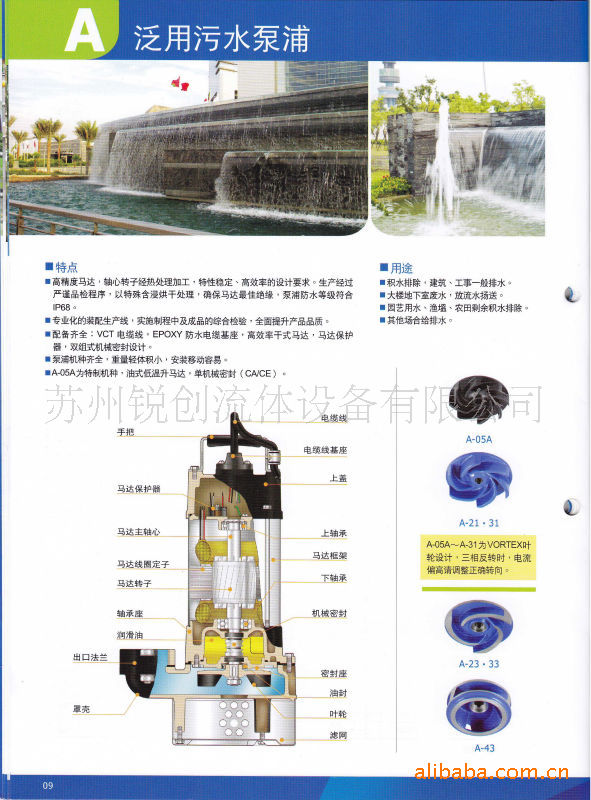3,配备齐全:VCT电缆线,EPOXY防水电缆基座,高效率干式马达,马达保护器,双组式机械密封设计.
