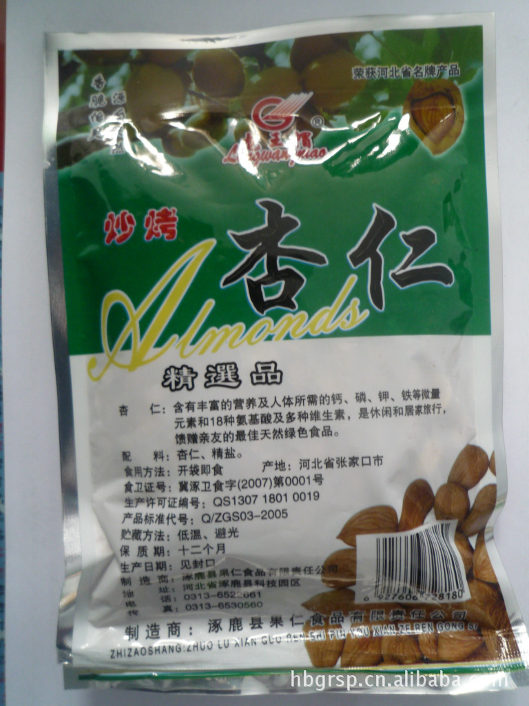 五香杏仁是以本地产的甜杏扁仁经过煮制、温水浸泡、调味、凉放、阴干、微波杀菌、烘干、包装等环节加工而成。本品营养丰富,香脆可口,老少皆易,携带方便,是旅游、休闲、保健、招待宾客的上等佳品