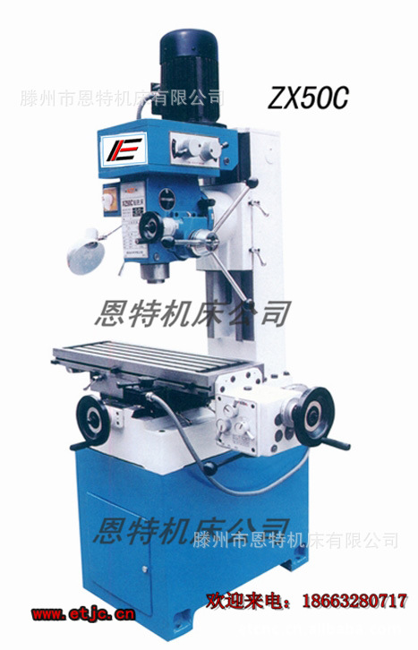 本机床为方形箱体的多功能钻铣床,立铣及卧铣均为齿轮传动,扭矩传递好,加工效率高装有机械进给器,可实现工作台纵向自动进给,减少了劳动强度,提高了加工精度和表面光洁度.床身导轨淬火处理,有良好的耐磨能力.铣头安装于滑臂前端,可前后移动,不仅能在垂直平面内左右回转45度,又可在床身上回转360度,具有良好的加工万向性。