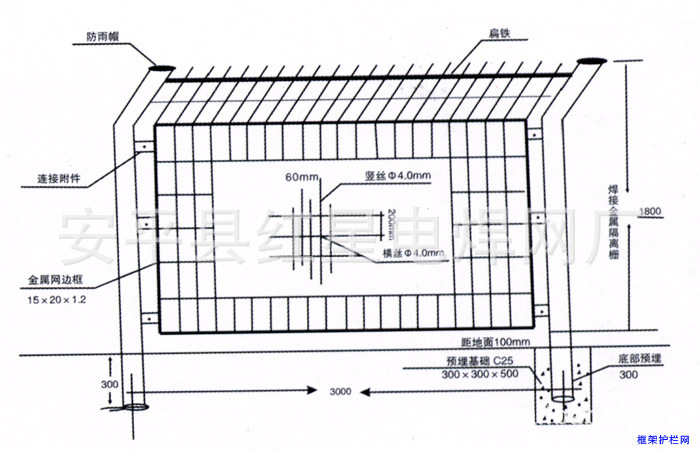 产品规格:1.8×3米(中心距) 丝经4.0mm,网孔:60×200mm