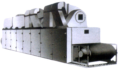 干燥段分成若干单元,每一单元的热风独立循环,由下往上或由上往下穿过铺满物料的不锈钢网带,带走物料水份。网带缓慢移动,运行速度可根据物料温度自由调节。干燥后的成品连续落入收料器中。
