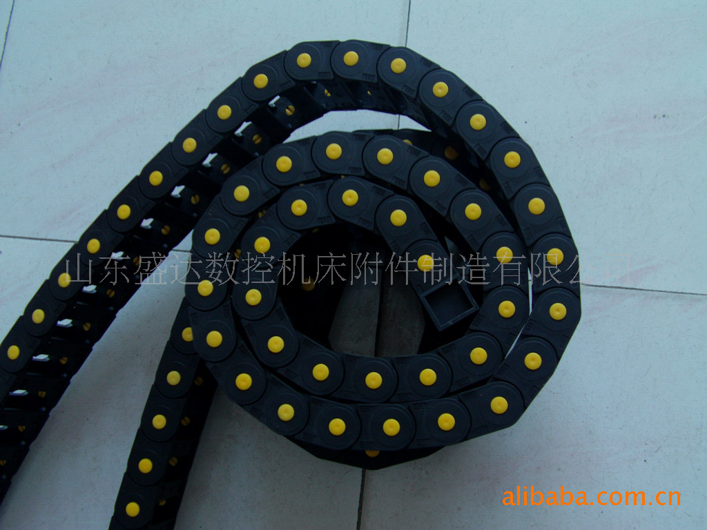 工程拖链 它适用于数控机床、加工中心、自动化机械及生产线等各类机床、机器人、运输机械、测量仪器、搬运装置以及其它驱动控制作为电线、电缆液、气软管的防护装置,能随机床、机械设备移动部件协调地运行,可发挥安全保护和导向的能力,可延长被保护的电线、电缆、液、气软管的使用寿命,降低消耗,可大大改善机床、机械设备的电线、电缆、液、气软管分布零乱的状况,使之整齐、规则地排列在一起,能增强机床、机械设备的整体艺术造型效果。