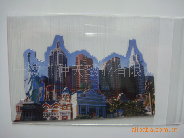3) 磁性冰箱贴:采用下面软胶磁铁+上面铜版纸或PVC彩色印刷腹膜制作而成。常规使用的是0.4MM厚的软磁