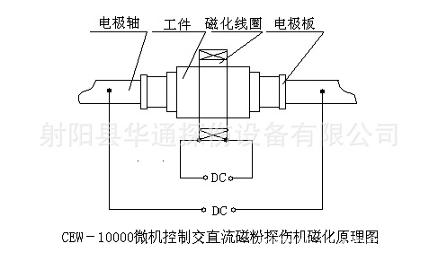 本机的磁化线圈为二组,以适应工件的纵向磁化,并避免了采用直流纵向磁化时工件两端部位的磁痕显示不清晰的问题。线圈可分别移入一端电极轴内。线圈的移动由电机驱动。