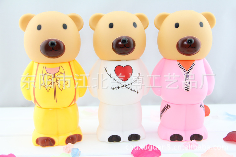 | 广告促销礼品 可印LOGO 量大从优!欢迎来图来样订做! 产品名称:暴力熊储钱罐 产品材质:优质ABS材质 尺 寸:有大中小三个号 大号:15*12**27CM(箱规:71*36*61CM,一箱装36个) 中号:12*10*22CM(箱规:59*51*56CM,一箱装60个) 小号:11*8.5*19CM(箱规:68*51*50CM,一箱装96个) 产品包装:PVC透明盒 颜色款式:有多种款式颜色及LOGO样式可选(详情可到相册里看) 产品特点:最新龙年上市的暴力熊储钱罐,是来自韩国最著名的ECHI的 插画师笔下的卡通形象,超级可爱又时尚,优质ABS材质,产品可拆分 成头部,身部脚部三个部分,每个部分都是独立的一个储钱罐,都有自己的一个 投币口,不怕摔不怕碎,手感也很好哦,还是个实用的储钱罐。送人是一个 很好的礼物。