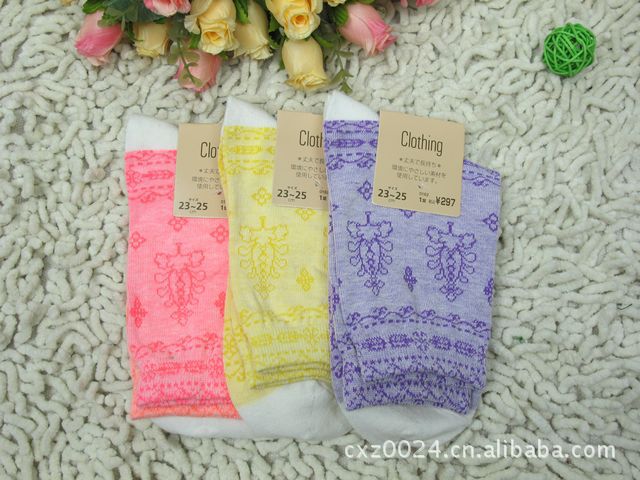日单精品,女士短袜,休闲袜,全棉材质,手感非常好,另外,柔美的糖果色设计,搭配复古图案,款式甜美时尚,是出口日韩的热销款!
