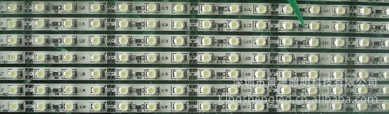 2、发光体均匀的排布在条型PCB板上,每三个LED即可组成一个回路,可以每条灯条配连接器,可以很方便得对接