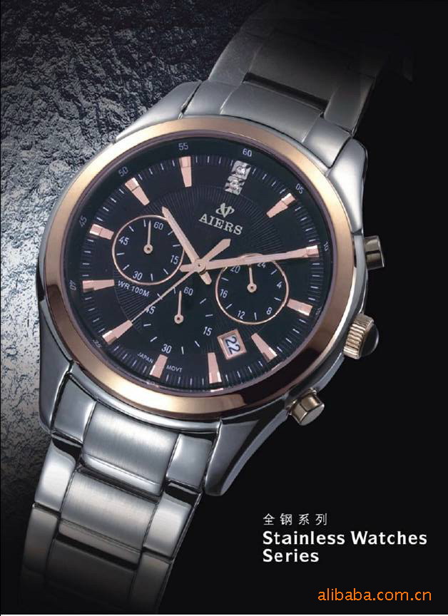 不锈钢壳,不锈钢实心表带,日本进口机械机芯,深度防水,可以加印可以logo,可定制。。。