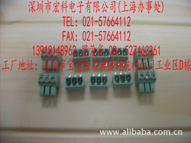 接线端子绿色3.81弯插 -3P 单价:1.50/PCS。100起订。我公司是专业生产高品质接插件.连接器.数据线.信号线.网络线.网络监控线.BNC线.串口.并口线.LCD线.PLC编程电缆等产品厂家。同时销售国际上知名品牌厂家的接插件与连接器;PLC编程器;变频器;光耦和进口电子产品.欢迎广大客户垂询。如要开票,要加12个点。金额在2000元以上才能开票。