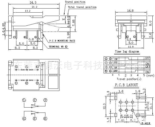 3 | 拉触电阻Contact Resistance | ≤100mΩ | 8 | 电器寿命Electrical life | 300,000 cycles |