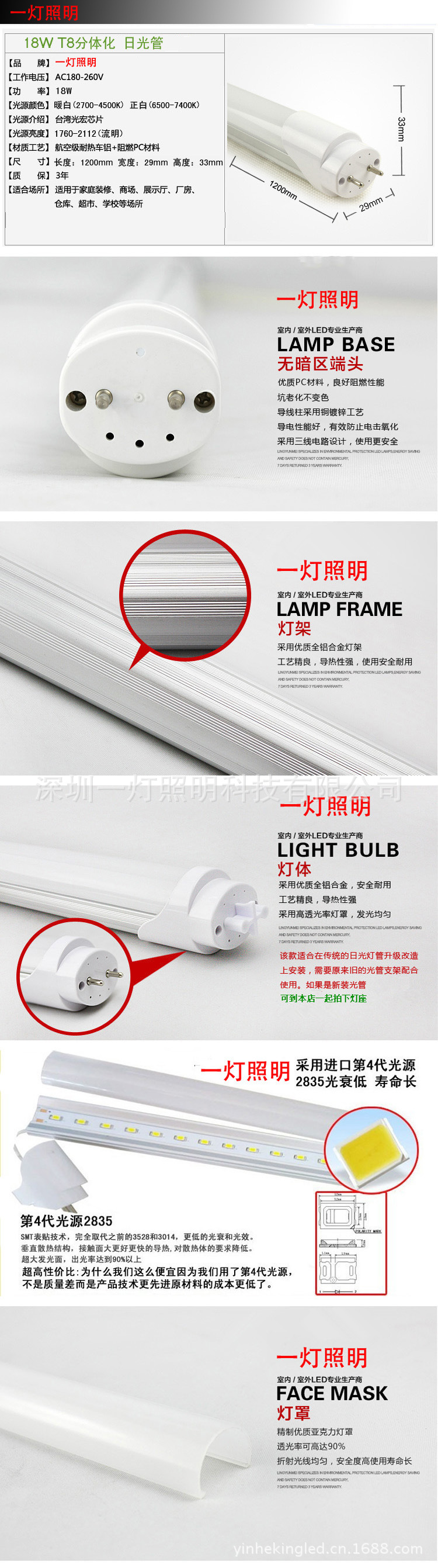 一灯照明供应T8一体化1.2米LED灯管