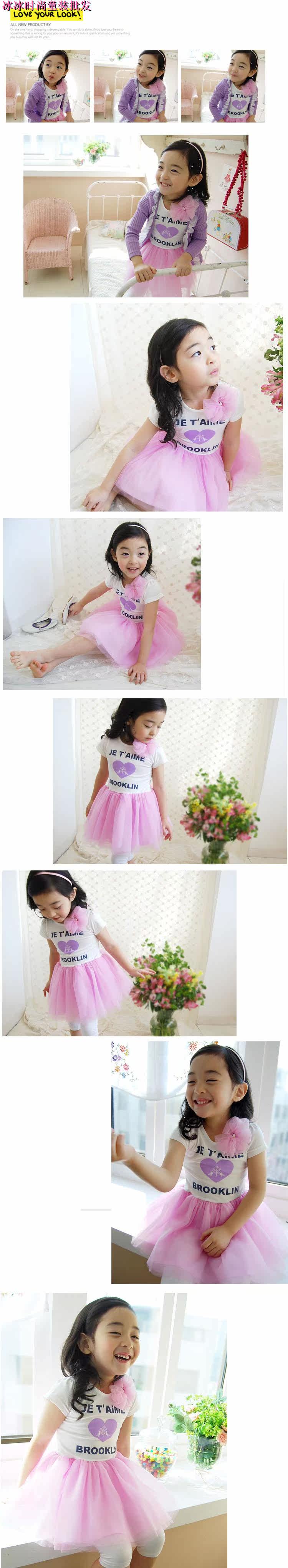 跑量款 韩版女童装蓬蓬爱心字母纱裙短袖连衣裙 夏季连衣裙