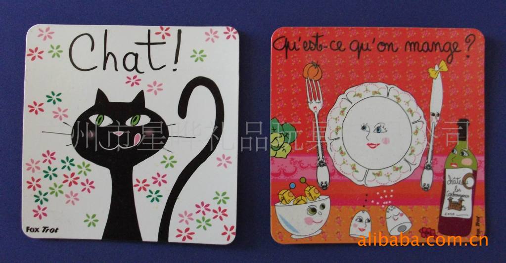 1)磁性冰箱贴:采用下面软胶磁铁+上面铜版纸彩色印刷腹膜制作而成。