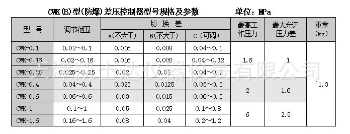 控制器的设定值调节范围为0.02~1.6 MPa,工作压力范围为0.1~6MPa。